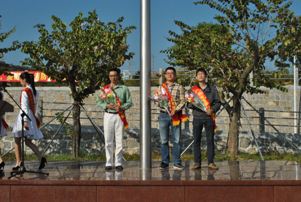 11月17日上午,每周一次的升旗仪式照例在北山湾校区国旗广场举行。与以往不同,今天的队伍前多了一排身披红色绶带的师生——他们就是近期我校参加各类技能竞赛的获奖选手。为在全校积极营造崇尚技能的良好氛围,今天的升旗仪式将对获奖师生进行通报表彰,学校领导、各处室主要负责人、全体班主任和2013级、2014级同学参加活动。