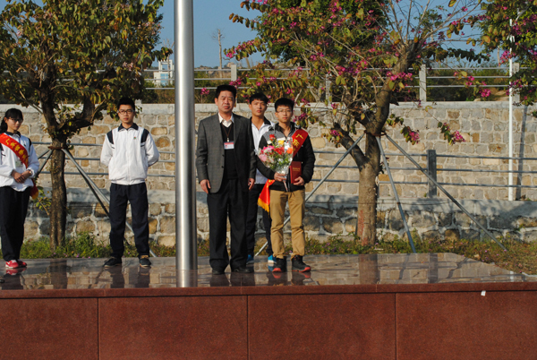 12月29日上午,我校在北山湾校区举行第18周升旗仪式。在仪式上,黄志校长为获得2014—2015年度劳动保障“技能雏鹰”奖学金的电气工程系林燕鹏同学颁奖,熊卫国副校长作国旗下讲话。学校领导、各处室主要负责人、全体班主任和2013级、2014级同学参加活动。