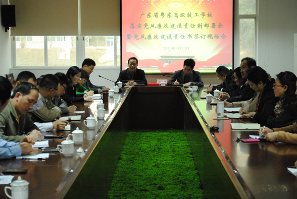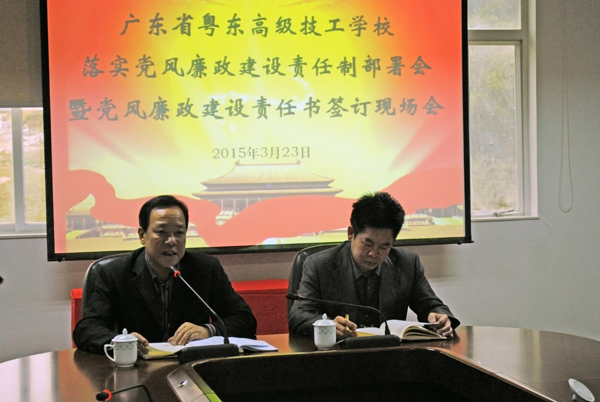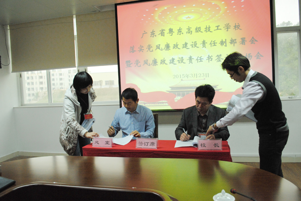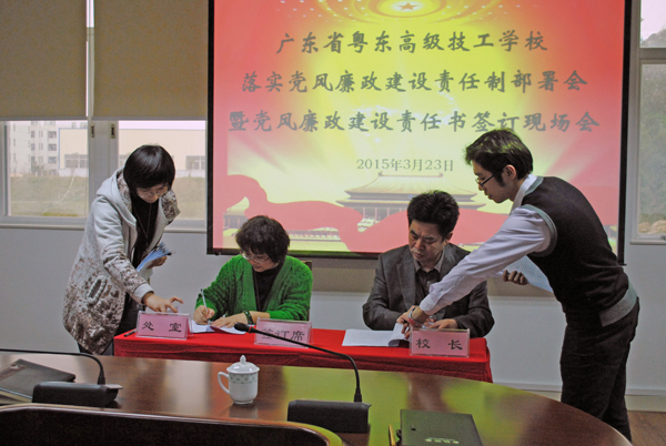 3月23日上午,我校召开2015年党风廉政建设责任制部署暨党风廉政建设责任书签订现场会,学校党政领导班子及各处室主要负责人参加了会议。