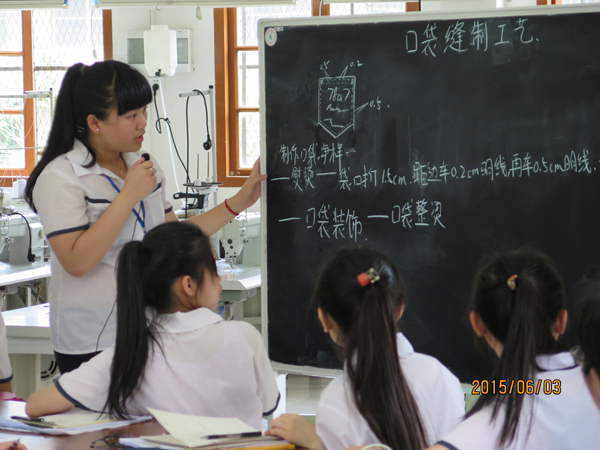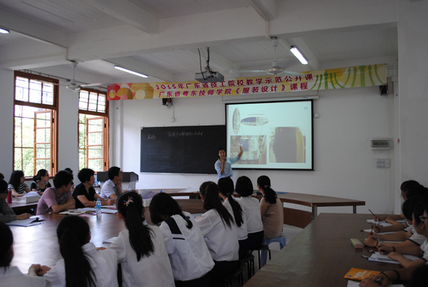 为推进一体化教学改革的步伐,充分发挥骨干教师在教学中的示范、引领作用,加强技工院校之间的交流与共享, 2015年6月3日上午,我校在金新校区2012级服装制作与营销(高技)班举办广东省技工院校示范课《服装设计》一体化教学观摩活动。本次示范课由我校工业设计系高级讲师石秀萍老师主讲。来自潮州高级技工学校、汕头市高级技工学校、汕头中医药技工学校的40多名老师和我校的领导、教师现场观摩了本次示范课。