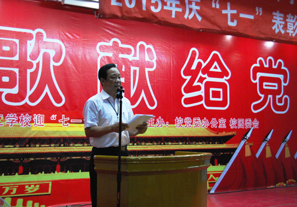 7月1日晚,根据学校党委工作部署,我校在金新校区隆重举行了“庆‘七一’表彰大会暨学生‘颂歌献给党’歌唱比赛”。表彰大会由黄志校长主持,校领导班子、全体中共党员、副科长以上干部和学生代表近300人参加了大会。
