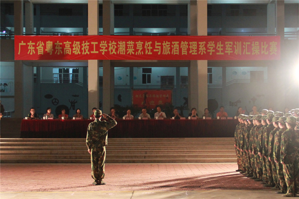 6月25日晚,我院潮菜烹饪与旅酒管理系准军事化管理活动学生军训汇操比赛在北山湾校区隆重举行,学院党委书记廖镇坑,副院长刘红成、彭贵福,相关处室负责人及潮游系全体师生参加活动。