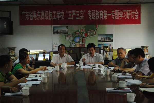 廖镇坑书记在总结发言中,各处室负责人要坚定理想信念,以身作则、率先垂范,做到“要包容不包庇、要指正不指责、要放手不放任、要做事不搅事、要谏言不怨言”,团结带领广大教职员工,将“三严三实”专题教育的学习成果转化为推动工作落实、争创一流业绩的实践行动,为学校打造粤东地区技工教育示范窗口建设做出新的贡献!