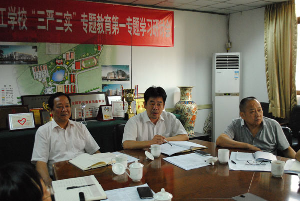根据学校党风廉政建设和“三严三实”专题教育活动的部署,7月13日,我校在金新校区分别召开2015年上半年落实党风廉政建设责任制汇报会和“三严三实”专题教育第一专题学习研讨会。学校领导班子成员,党委委员、纪委委员,各处室主要负责人参加会议,会议由学校党委廖镇坑书记主持。