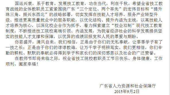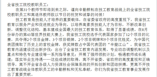 转载省人社厅《致全省技工院校教职员工的慰问信》
