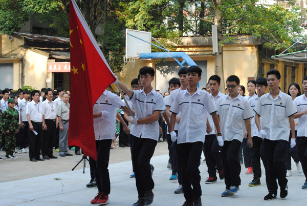 开学典礼上,首先进行了庄严肃穆的升旗仪式。随后,黄志校长向首次参加全校升旗仪式的2816名2015级新生表示热烈欢迎。黄校长向同学们介绍了我校自1970年创办以来,不断发展壮大的光辉历史,对同学们选择技能成才道路表示由衷欣赏。他向同学们提出三点希望,一是要增强学习动力,做到好学乐学;二是要加强道德修养,做到德技双馨;三是要学会务实进取,做到脚踏实地。最后,黄校长以“今日粤东高技学子,明天技能强国栋梁”勉励大家以昂扬的精神状态投入到新的学习和生活中,为将来的职业、事业打下坚实基础。