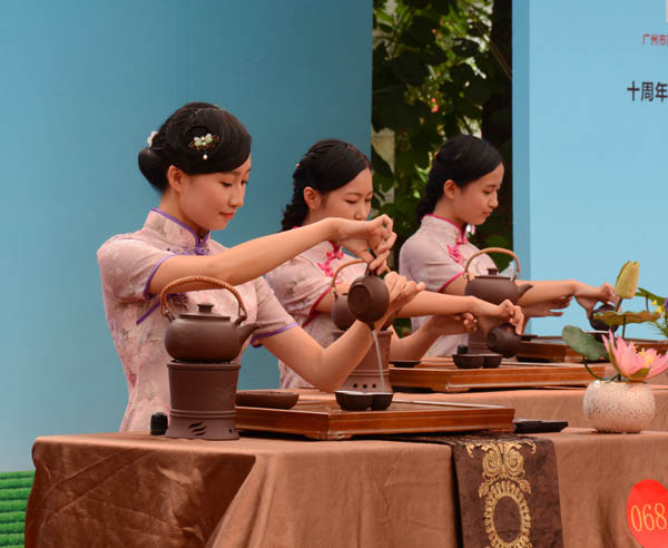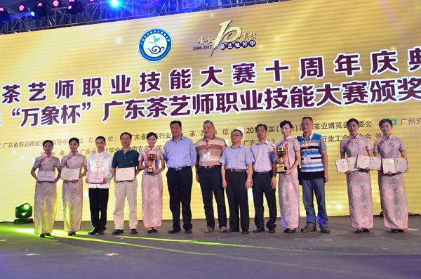 11月20日,2015“万象杯”广东茶艺师职业技能大赛颁奖典礼暨广东省茶艺师职业技能大赛十周年庆典在广州国际茶业博览会举行。我院教师陈沛丹和学生周诗伟、郑小曼、林培晓、刘少娜、陈佳璇的《荷塘恩莲花情》获团体赛师生组第一名金奖,陈沛丹老师荣获“广东省技术能手”称号。我院2015届茶艺专业毕业生王晓冰以《有声茶语无声茶情》获个人赛金奖和“广东省技术能手”、“最具颜值奖”、“茶文化优秀工作者”等荣誉称号。潮菜烹饪与旅酒管理系副主任李光亮获“优秀指导教练”称号,学院因成绩优异获“优秀组织奖”。副院长彭贵福代表学院出席颁奖典礼并接受颁奖。