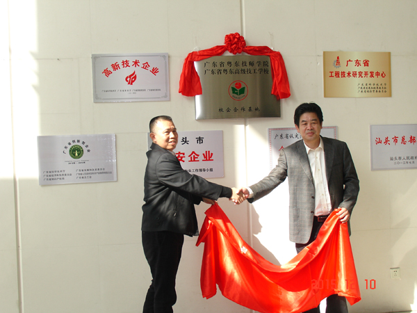 黄志院长与汕头华兴冶金设备股份有限公司李立鸿总经理分别代表校企双方签订合作协议,并共同为校企合作基地揭牌。随后,学院领导一行在李总经理的陪同下,参观了企业展厅和工作车间。
