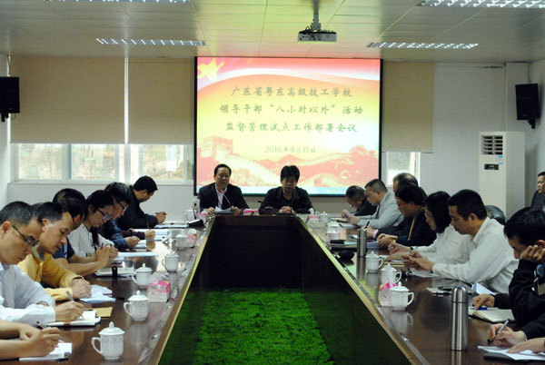 为贯彻落实市纪委部署的领导干部“八小时以外”活动监督管理试点工作,2016年4月11日上午,我校在北山湾校区行政楼第一会议室召开领导干部“八小时以外”活动监督管理试点工作部署会。学校中层以上干部参加了会议。会议由党委书记廖镇坑同志主持。