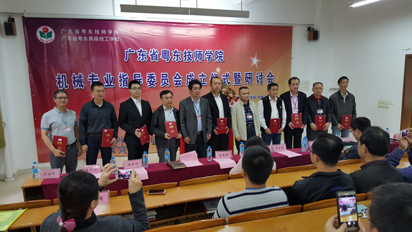 2016年4月14日下午,广东省粤东技师学院机械专业指导委员会在北山湾校区成立。广东达诚机械有限公司、汕头市信一塑机制造有限公司、汕头市华兴冶金设备股份有限公司、广东安德力新材料有限公司、潮州市彩达包装机械有限公司等有关企业代表出席仪式。学院黄志院长、彭贵福副院长、相关处室负责人及机械专业师生代表参加活动。活动由机械工程系陈长鸿主任主持。