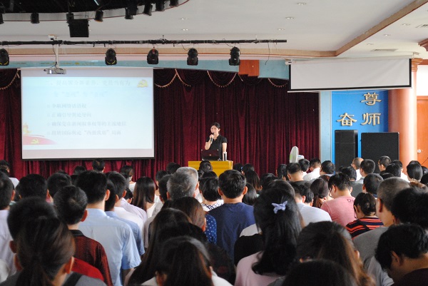 会议最后,我校微型党课竞赛一等奖获得者、汕头市“两学一做”学习教育微型党课宣讲团成员吴洁璇同志以《提高党员媒介素养 捍卫祖国第五疆域》为题进行“两学一做”微型党课宣讲。
