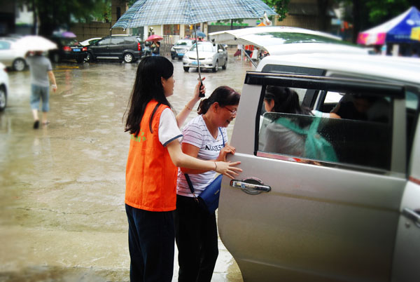 一场滂沱大雨让匆忙赶来报道的学生、家长措手不及。倾盆大雨浇不灭我们志愿者们迎新的热情,大家都有条不紊的搬出伞具、指引车流、协助新生和家长将行李搬运至宿舍楼上。15级计算机网络大专班学生志愿者杨森锋同学说:“即使大雨让我全身湿透了,但是听到师弟师妹们一声声感谢,就有一股暖流涌上我的心头”。除此之外,还有无数学生志愿者的身影穿梭在密密麻麻的雨线中,这一幕感动着在场的所有人。
