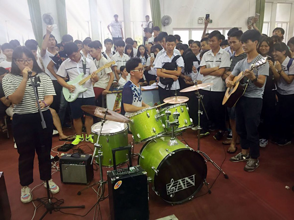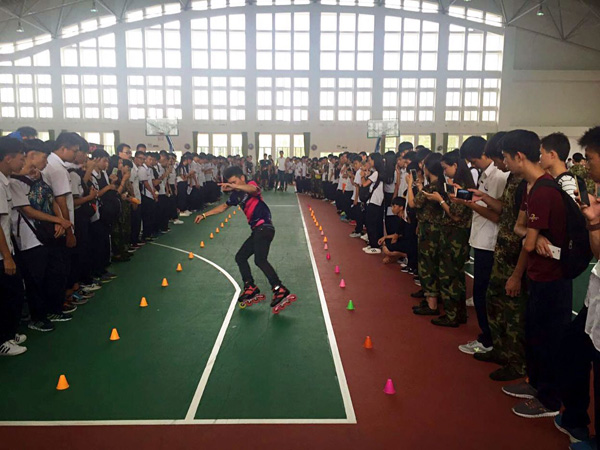学院28个学生社团“八仙过海各显神通”,纷纷亮出看家本领,频频上演校园“抢人大战”。吉他协会会员琴声悠扬,歌声美妙;跆拳道协会会员的后空翻、侧踢表演令人惊叹不已;轮滑协会会员的伴乐滑翔,引来不少同学驻足围观;模特协会会员的时装秀,为现场观众送上视觉盛宴;食品加工协会会员更是摆出诱人的蛋糕,顿时颜值爆表粉丝猛涨。