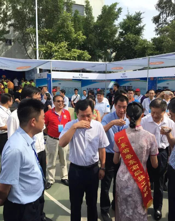 “莫嫌工夫茶杯小,茶韵香浓情更浓……”2016年9月28日,中国技能大赛——第44届世界技能大赛全国选拔赛闭幕式现场,我院应邀参加展演的“潮汕工夫茶”项目展位前人头涌动、水泄不通,人力资源和社会保障部职业能力建设司张立新司长、广东省人力资源和社会保障厅黄汉标厅长等领导在黄志院长的陪同下品赏了由我院师生带来的潮汕工夫茶展演和茶点,并对我院特色专业办学成果赞不绝口。