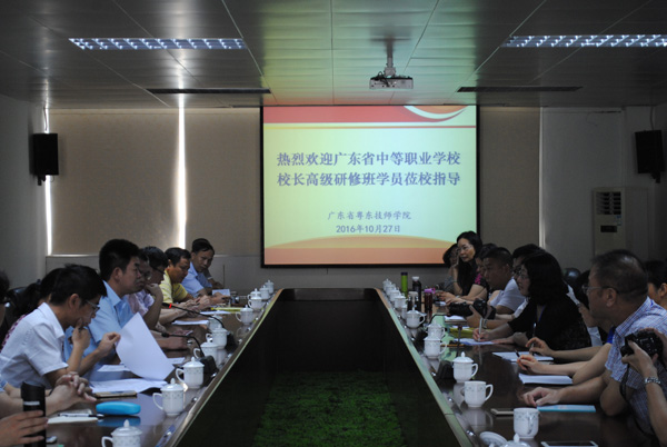 2016年10月27日,由广东技术师范学院师资培训中心承办的广东省中等职业学校校长高级研修班学员一行莅临我院考察交流。