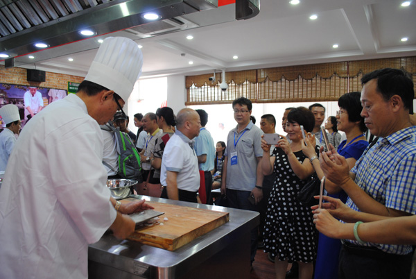 座谈会后,研修班学员一行参观了校史馆,对我院的悠久历史表示赞叹。随后,在相关处室负责人的陪同下,研修班学员们先后参观汽车工程系、电气工程系、机械工程系,实地了解汽车维修、数控机床、工业机器人等专业建设及教学实训情况。在潮菜烹饪与旅酒管理系,学员们在导游专业学生的引领与讲解下,参观了潮菜烹调专业师生现场展示刀工、食品雕刻等课堂教学,观赏茶艺专业师生的茶艺表演并品尝潮汕工夫茶。