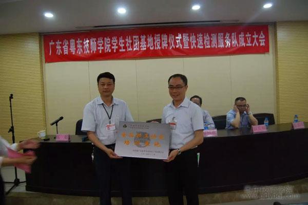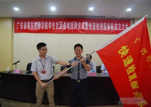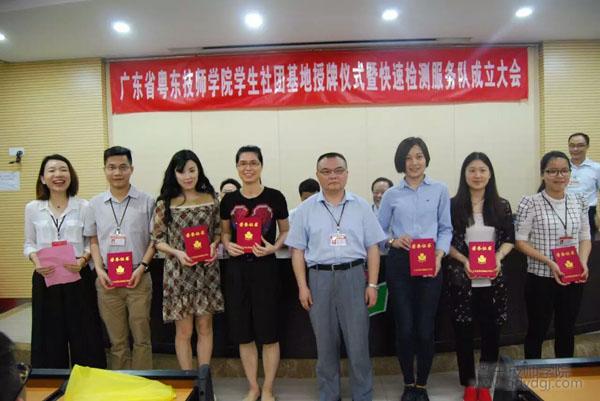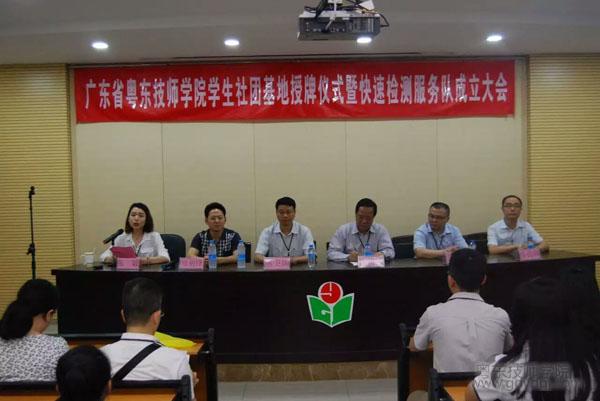 2016年5月4日下午, 广东省粤东技师学院学生社团基地授牌仪式暨快速检测志愿服务队成立大会在金新校区举行。学院党委书记廖镇坑,副院长熊卫国、彭贵福,共青团汕头市委学少部部长郑初锋等领导出席会议,我院团委负责人及质量检验工程系师生近120人。