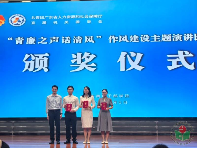 为深入学习贯彻习近平总书记关于青年工作的重要思想,扎实开展深入贯彻中央八项规定精神学习教育,加强团组织建设、提高团干部业务能力,广东省人力资源和社会保障厅直属团组织于近日成功举办“青廉之声话清风”作风建设主题演讲比赛。此次比赛,来自厅属各单位的12名选手通过鲜活案例生动诠释了人社青年“系好第一粒扣子”的行动自觉。经过激烈角逐,我院蔡焕佳老师荣获本次演讲比赛三等奖。比赛现场,蔡焕佳老师以《青丝系廉扣》为题,结合本职工作,通过讲述身边同事坚守原则、抵制诱惑的真实事例,用饱满的热情、质朴的语言、真挚的情感深切表达了自己作为青年教师严于律己、清廉从业的决心和职业素养,以“小切口”展现了新时代青年的责任...